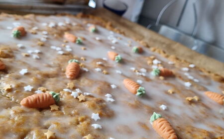 Wir hoffen, dass der Osterhase auch bei uns vorbeikommt, deshalb haben wir schon fleißig Eier geschmückt, Fuß- und Handabdrücke gemacht, Karotten gebastelt und Kuchen gebacken.