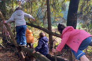 Bei (fast) jedem Wetter forschen, klettern und toben die Kinder im nahe gelegenen Wald