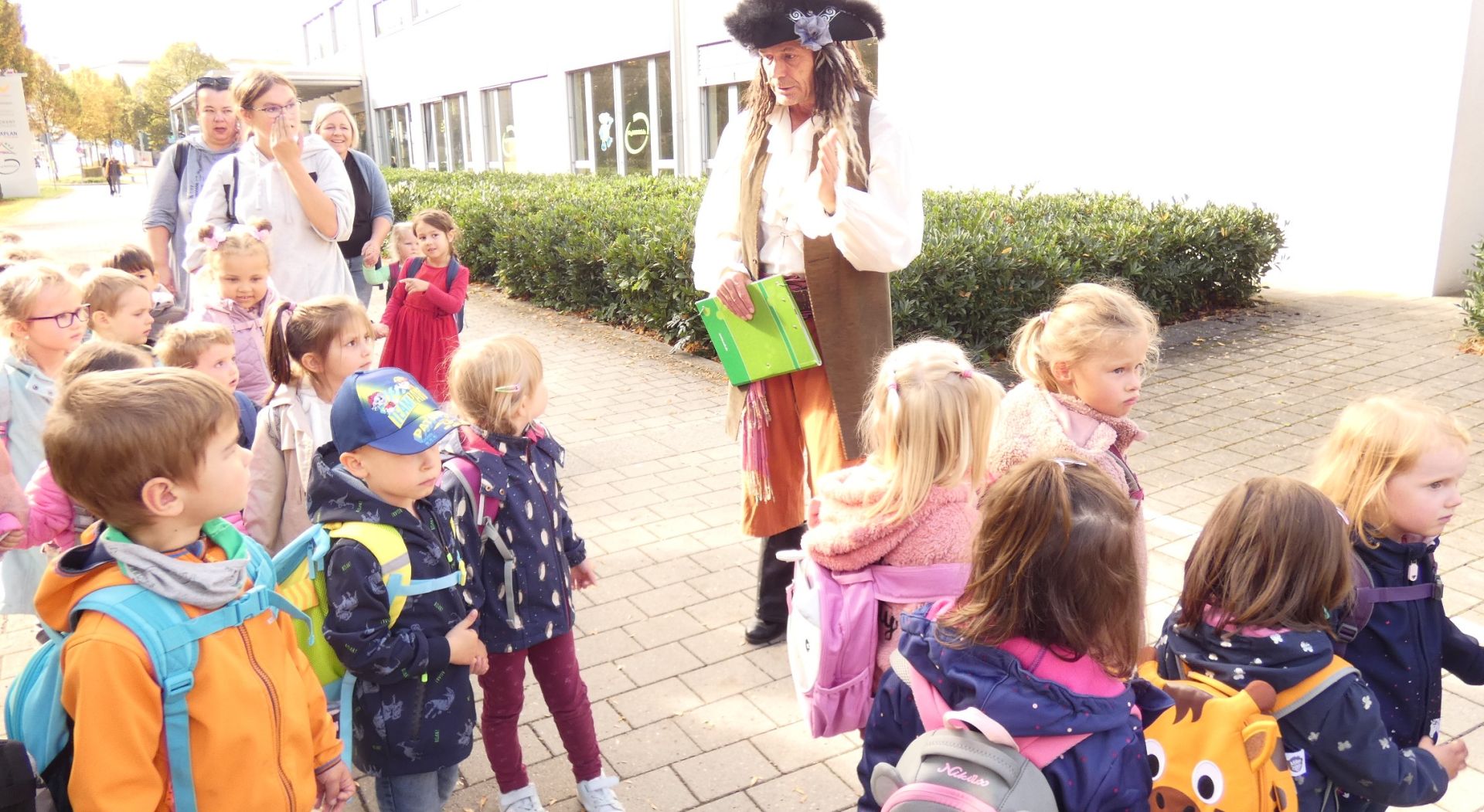 haben wir bei diesem Event mitgemacht. Es wurden viele Mitmachstationen und Infostände angeboten. Im Vorfeld haben wir viel über gesunde Ernährung gelernt, probiert, sortiert und geschmeckt. Natürlich ist viel Bewegung ebenso notwendig und wichtig und macht super Spaß. Zum Abschluss unseres Projektes waren wir im Musikom zum Theater „Jolinchens Seereise“. Dort wurden wir von einem Piraten begrüßt.